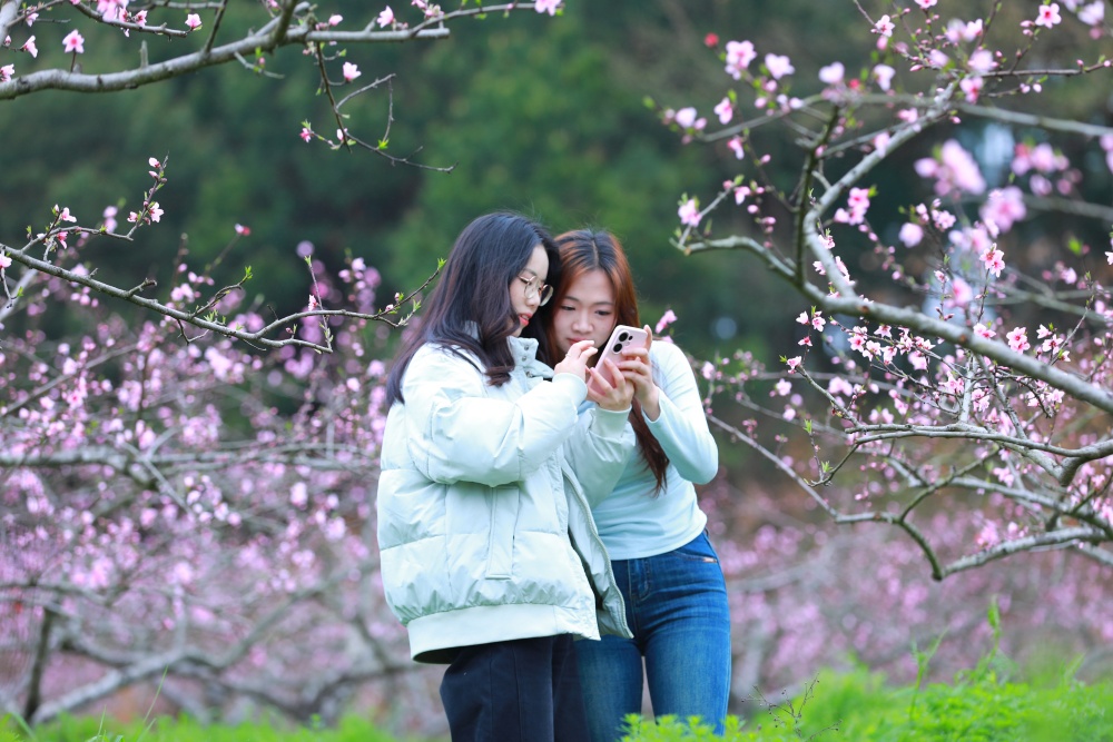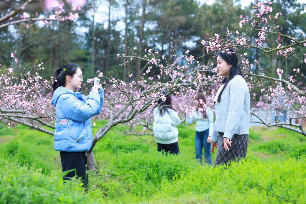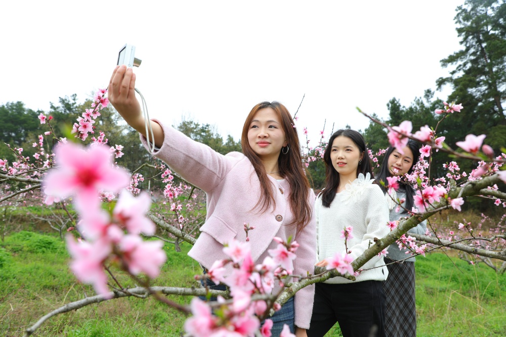 “听说塘脚的桃花开了,开得很好看,我特地约了我的几个好闺蜜过来打卡拍照,很出片。”游客刘杉与朋友专程前来赏花。