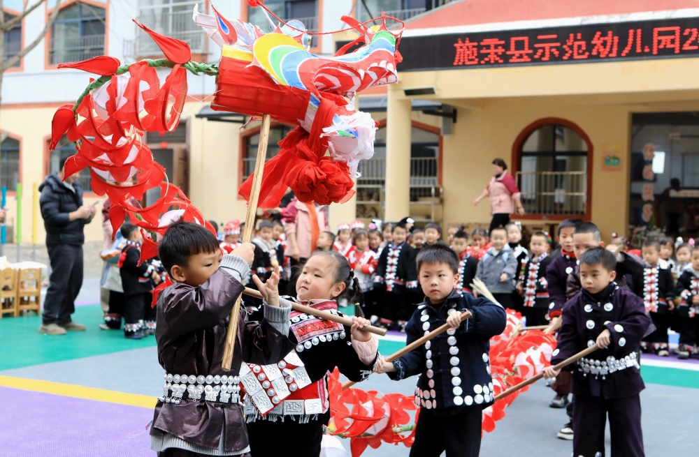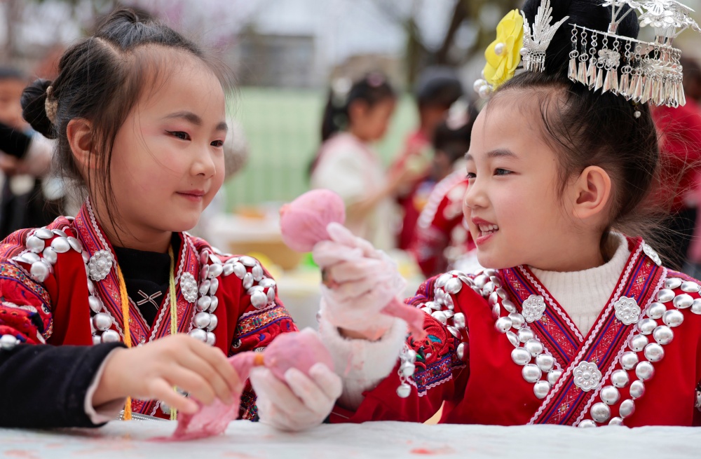 3月20是农历二月初二,贵州省黔东南苗族侗族自治州施秉县各幼儿园开展“二月二龙抬头”系列主题活动。孩子们在染彩蛋、舞龙、跳踩鼓舞等多彩民俗活动中欢庆“二月二”节日,感受传统民俗文化的独特魅力。