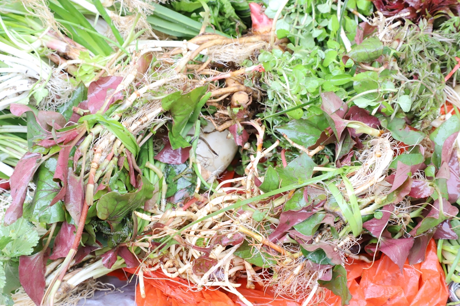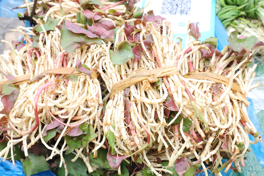 刚挖出来的折耳根,鲜嫩爽脆,是大家的心头好。零售价约2元/把。