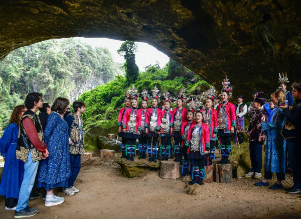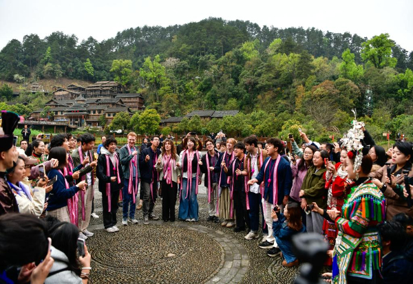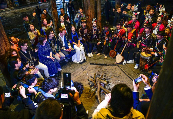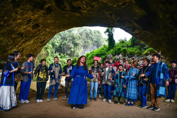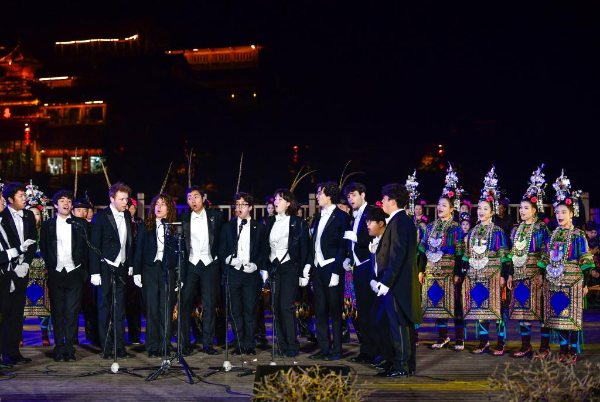 3月23日至24日,美国耶鲁大学威芬普夫斯阿卡贝拉合唱团走进贵州省黔东南苗族侗族自治州黎平县,开展“大鸾和鸣·天地交响”主题文化交流活动。在侗寨旁、鼓楼中、天生桥下,两国青年以音乐为桥梁纽带,让侗族大歌与阿卡贝拉相互交融。