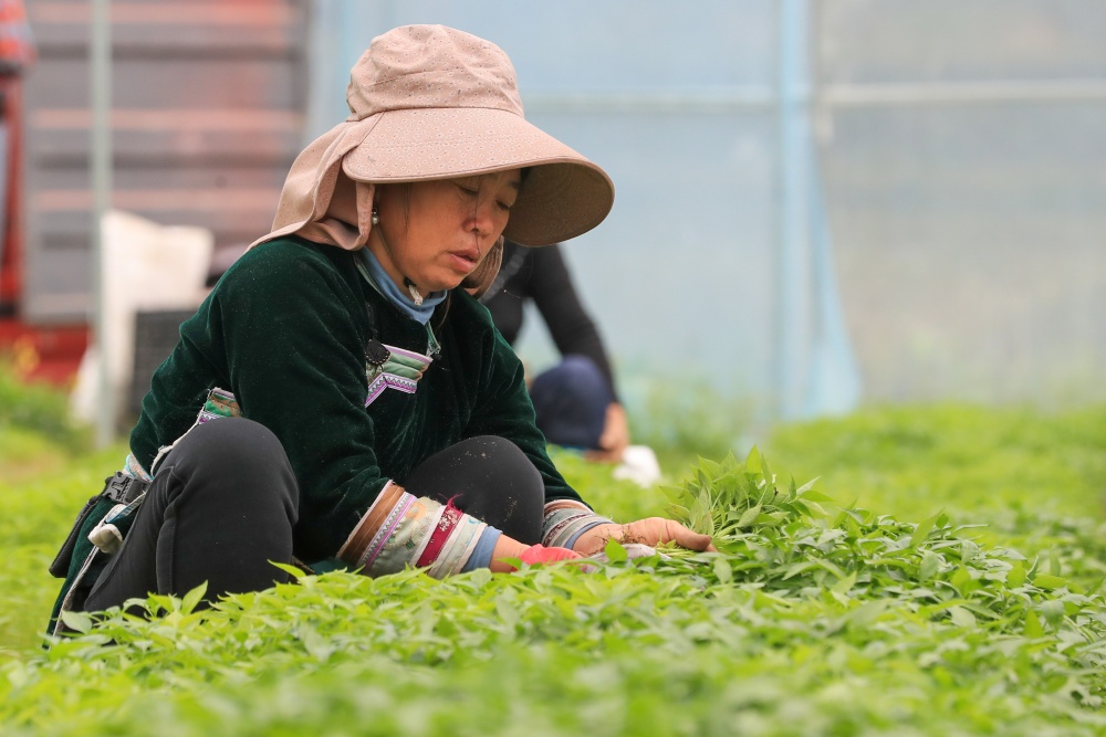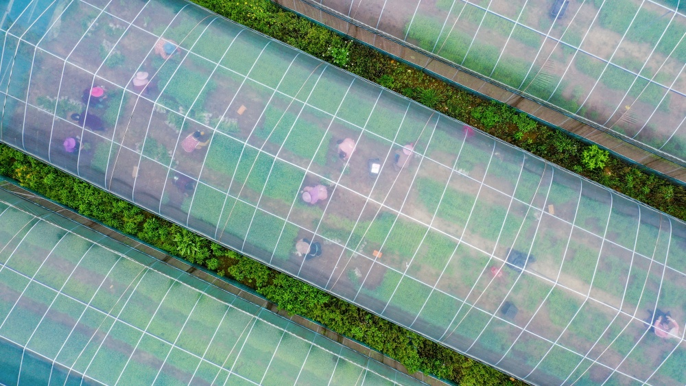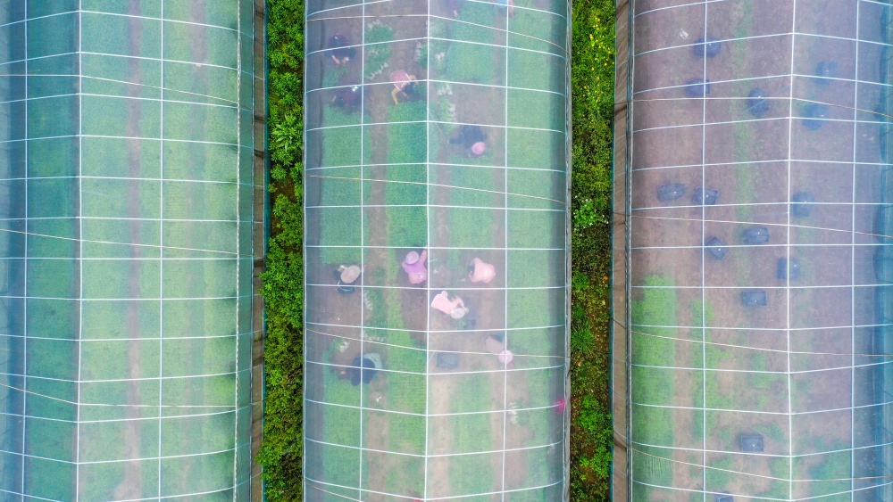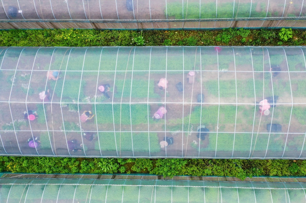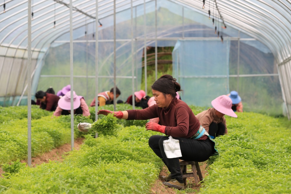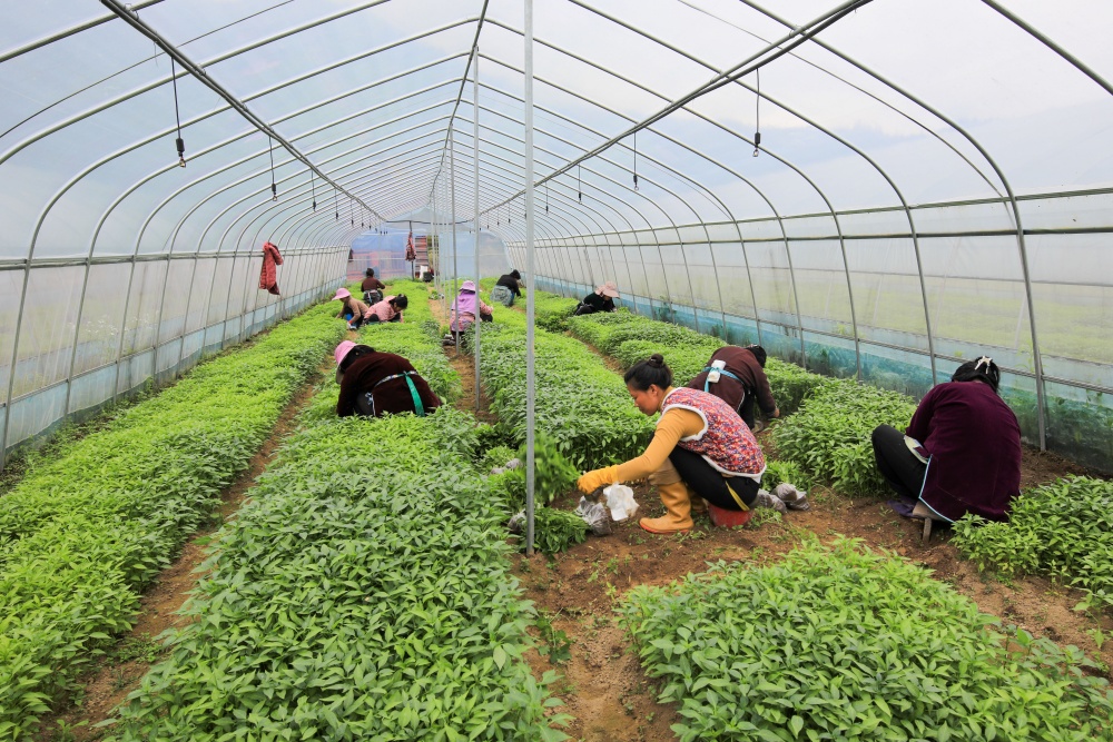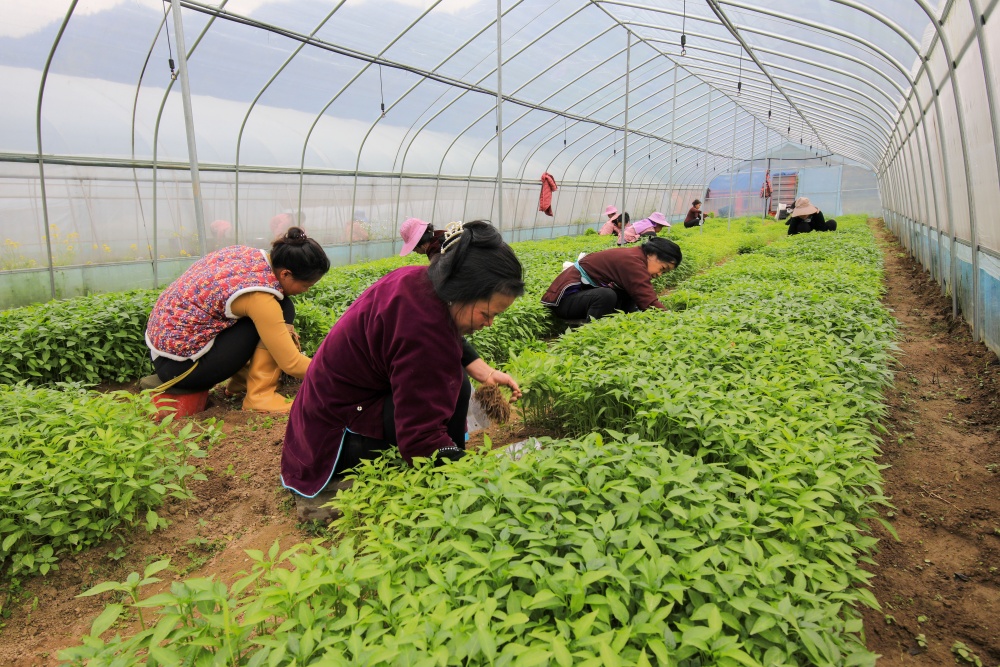 3月24日,村民在从江县刚边壮族乡平中村辣椒育苗基地大棚内起辣椒秧苗。
