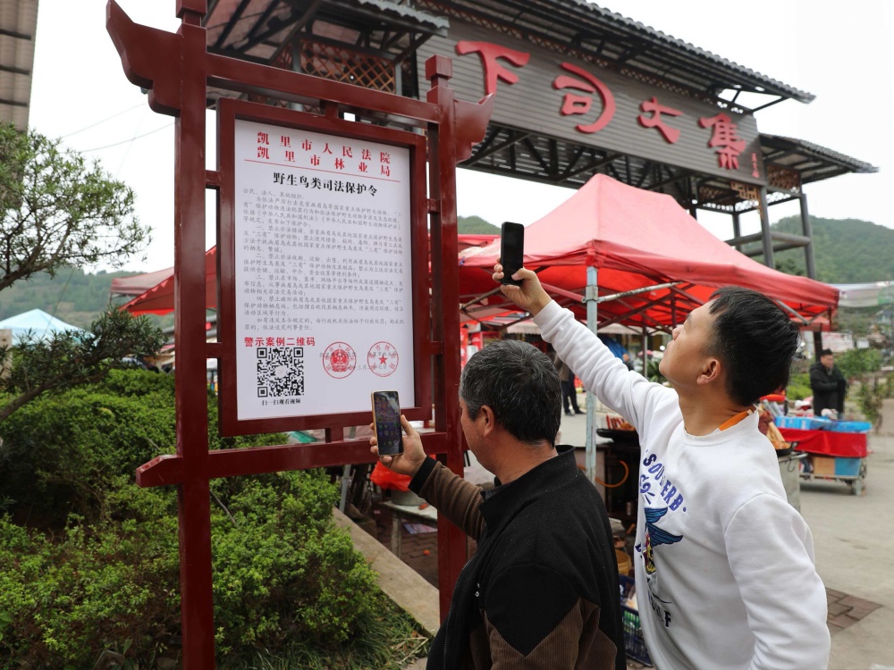 每年三月最后一周为贵州省“爱鸟周”。在今年《贵州省野生动物保护条例》施行后的首个“爱鸟周”期间,凯里市人民法院联合市林业局,在看牛坡鸟类栖息地、下司大集鸟类交易核心区同步启用“司法保护令+警示案例二维码”,以创新模式开展野生鸟类保护普法,为黔东南州生态司法保护提供可推广的基层样本。