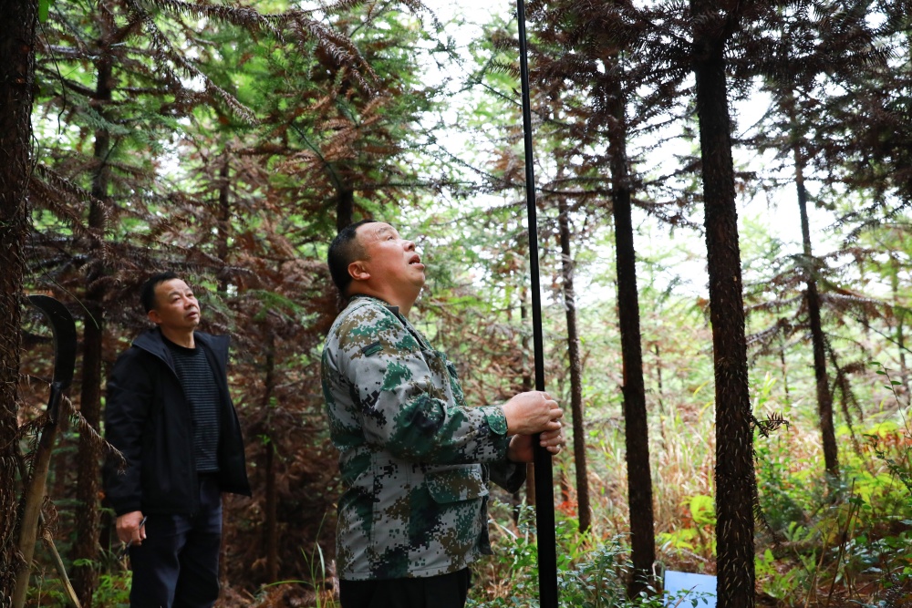 “我们就是根据平板上定位,找到实际地块,然后到了林地之后,用RTK把四个角和边界定出来,然后我们就各负其责,打树牌、量胸径、量树高,把四百平方米里面的每一棵树全部准确地量好,这样才能够得出我们准确的数据。”剑河县林工商公司工作员彭宇灵的介绍,生动诠释了监测工作的细致与严谨。