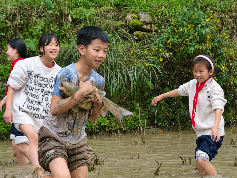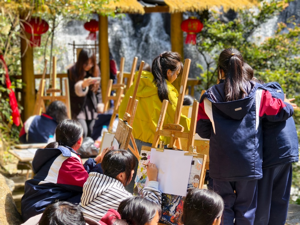 本次研学活动精心设计了多元且富有实践性的课程内容。听七彩古稻的种植历史、营养价值以及它对当地经济的贡献,让孩子们了解“谁知盘中餐,粒粒皆辛苦”的深层含义;在波澜壮阔的太元瀑布前写生、拍照打卡,让孩子们感受大自然的美;在稻田里捉鱼,感受泥土的温润与生命的活力。一系列沉浸式体验活动,带领孩子们走出教室,奔赴自然与田野。在亲身实践中学习成长,既锻炼了动手能力、增长了见识,也让热爱故土、传承文脉的情怀在心中悄然生根。
