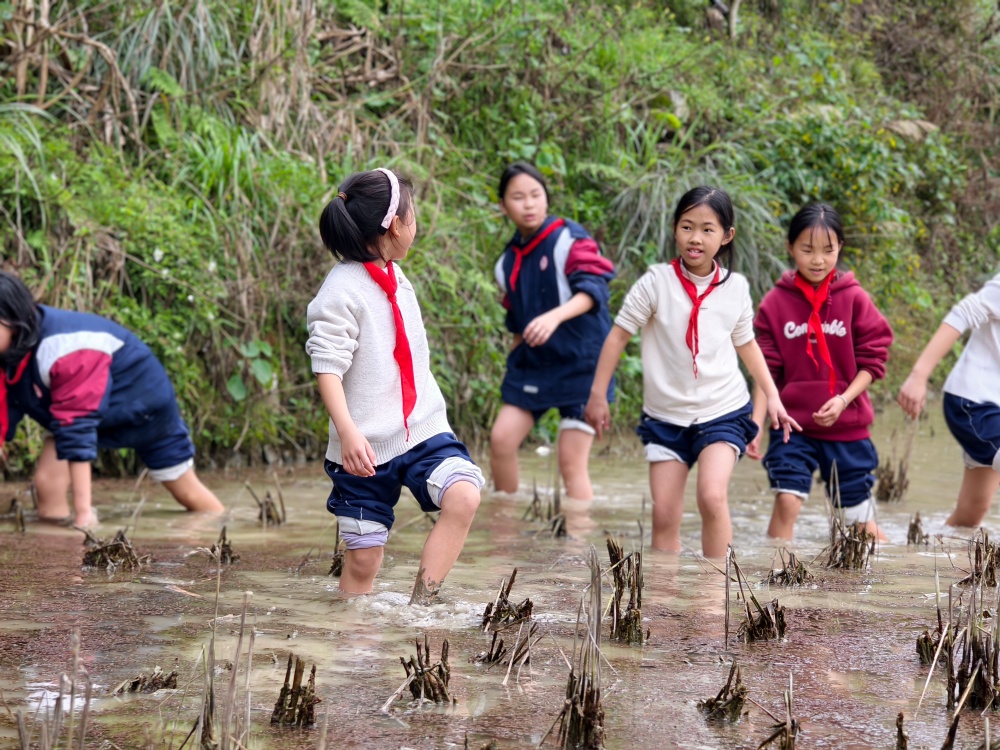 3月31日,榕江县仁里乡太元村提前迎来了一股青春热潮。仁里水族乡中心校组织一场“春日有约·爱在乡土”为主题的春假研学活动,本次活动不仅仅是一次简单的春游,更是一场精心设计的“心灵滋养”与“乡土认同”之旅。让孩子们在“看发展、触泥土、绘山水”的沉浸式体验,让孩子们在劳动的快乐中建立自信,在自然的怀抱中释放天性。