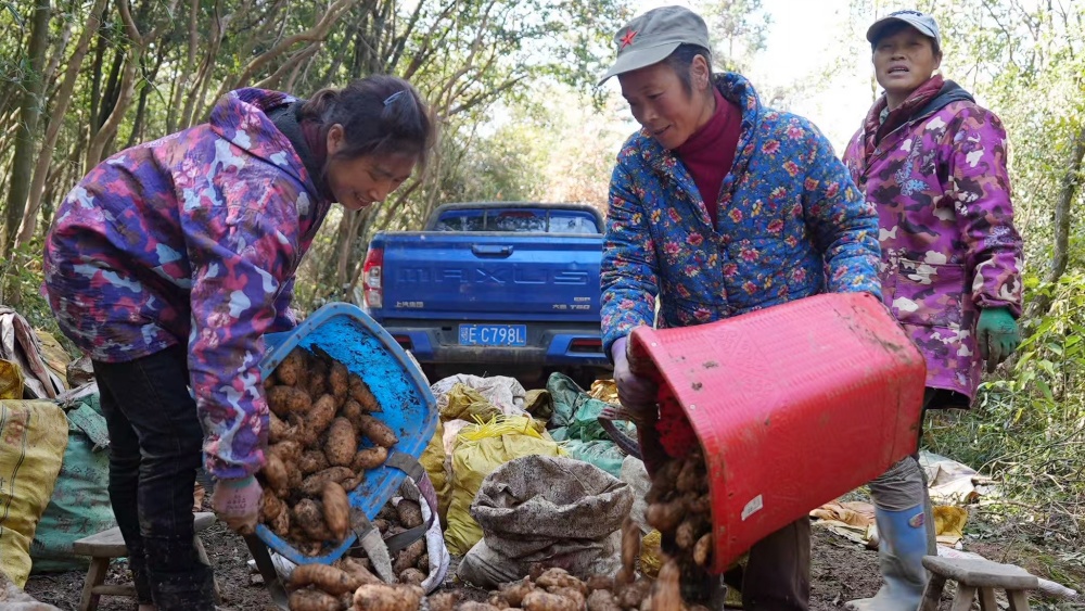 冬日的马家坡天麻基地,村民们挥舞着锄头,在山林间挖出一个个圆润饱满、色泽鲜亮的天麻。