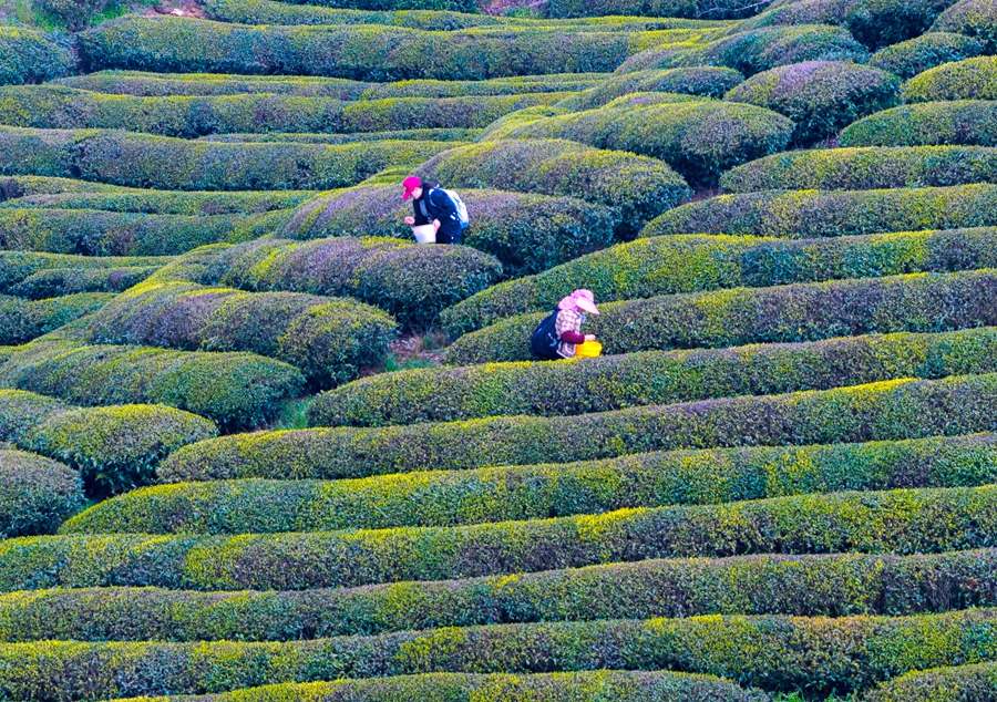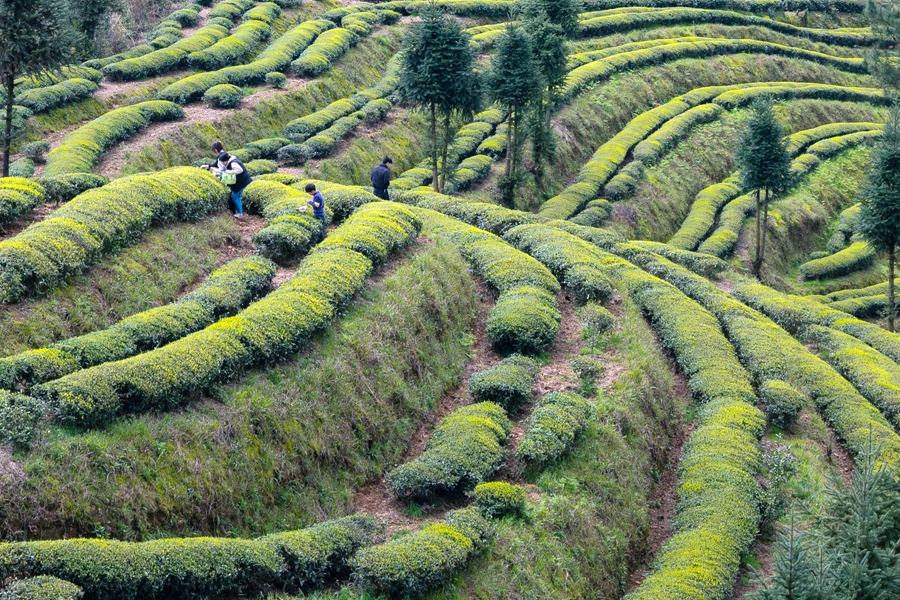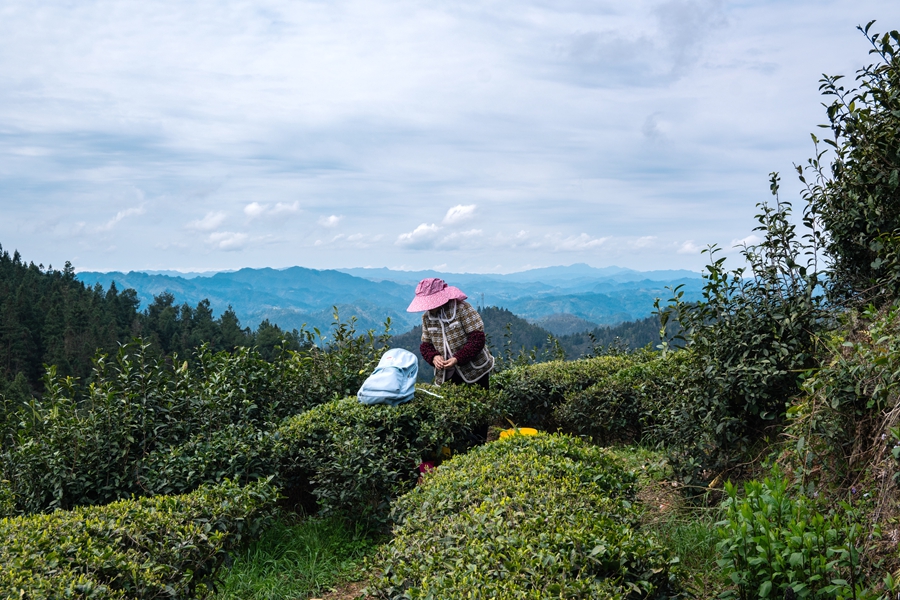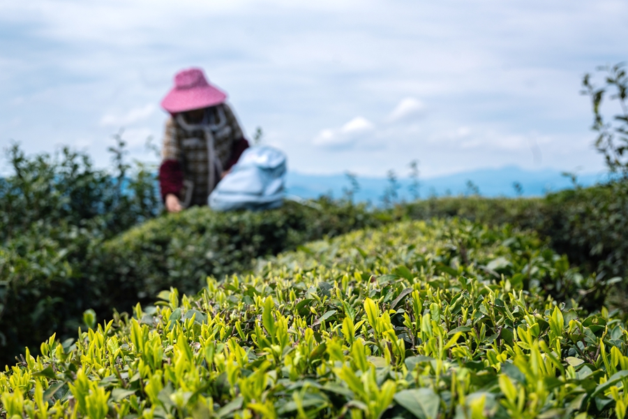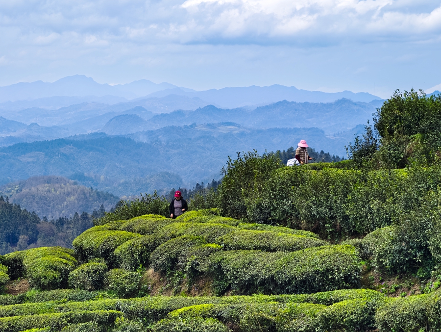 春回大地,茶吐新绿。随着清明节临近,贵州省黔东南苗族侗族自治州岑巩县客楼镇的茶园迎来采摘季,茶农们抢抓晴好天气,忙着采摘茶叶,保障市场供应。