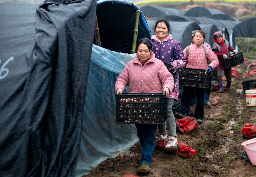 同时,在水尾镇大树林坝区,700亩羊肚菌种植基地也迎来了最后一批菌菇的集中采收。百余名村民分散在田垄之间,有条不紊地进行着采收、分拣、装筐等工序,忙碌的身影成为坝区一道亮丽的风景线。