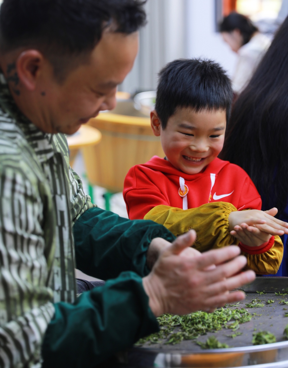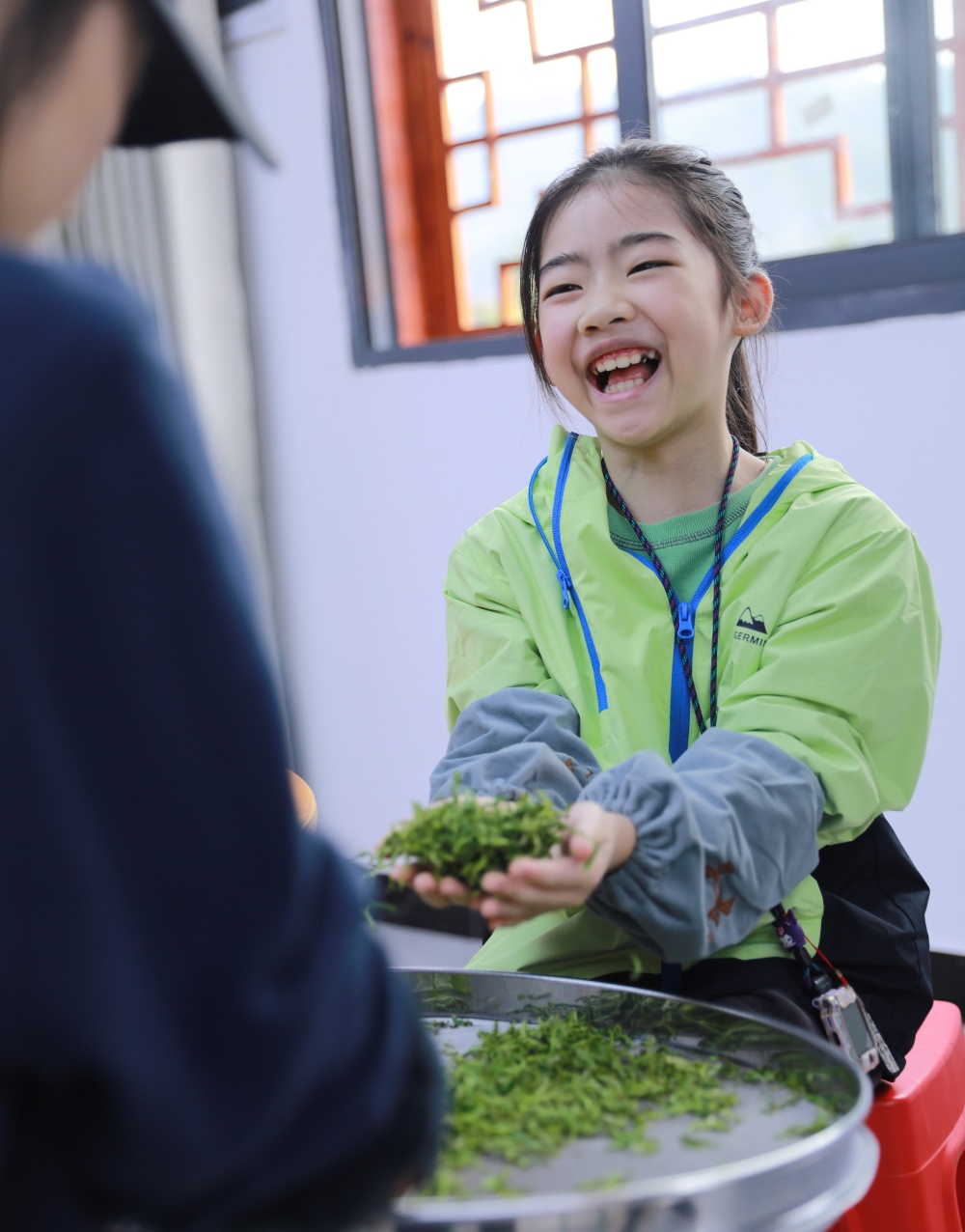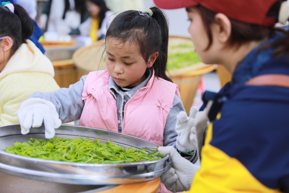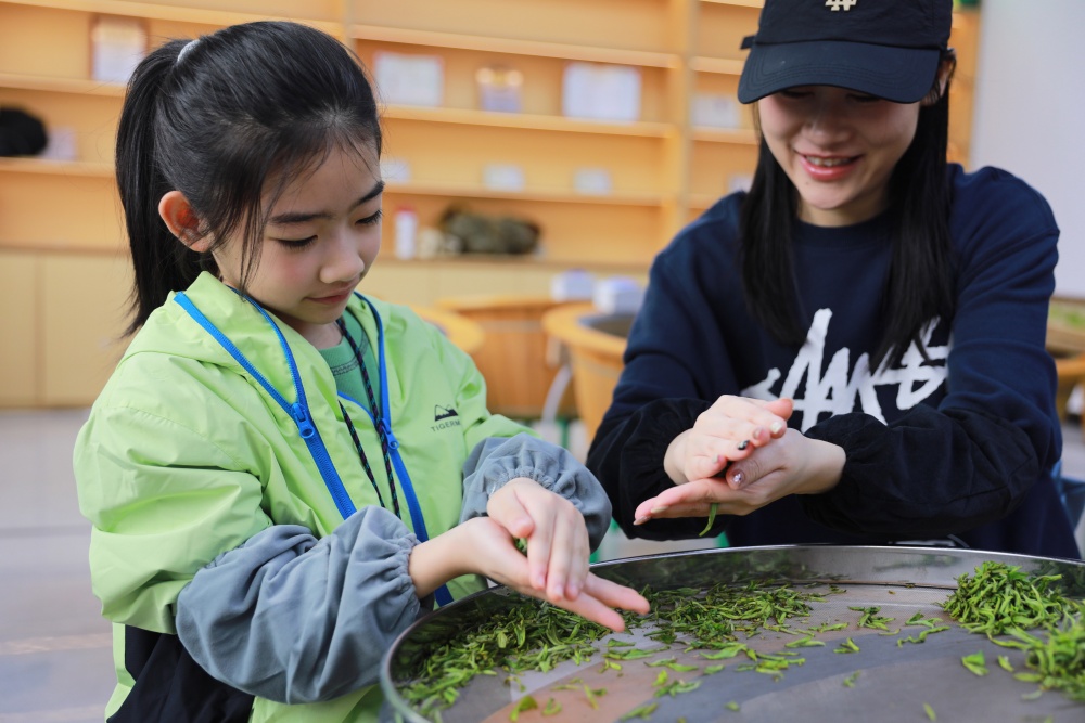高山茶园里,孩子们挎着竹篓,在茶农指导下学习采茶、制茶;苗绣体验区里,绣娘手把手传授针法,讲解苗族图腾背后的文化故事,让非遗技艺在孩童指尖薪火相传;山林间,孩子们辨识野生药材,学习苗药知识,在自然课堂里汲取生态与文化养分等等。“门外就闻到香味了!”一名小朋友兴奋地说道。