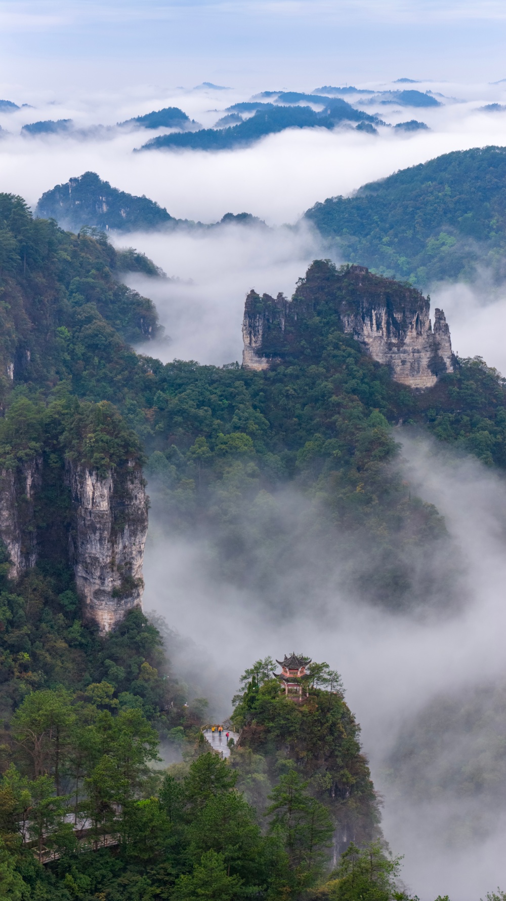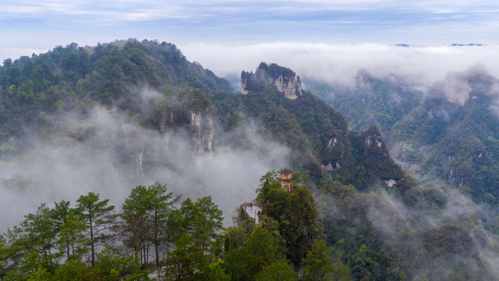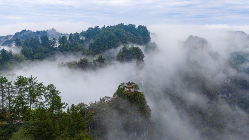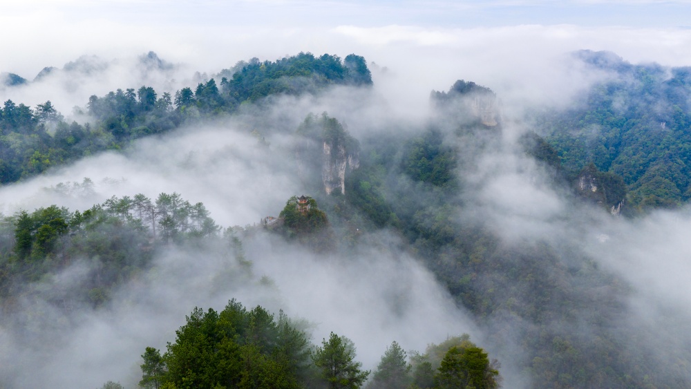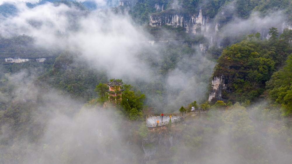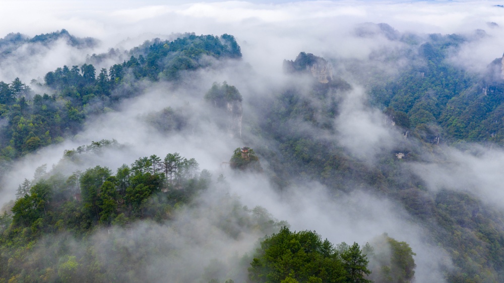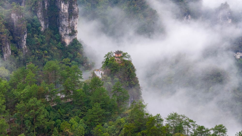 近日,雨后初晴的贵州省黔东南苗族侗族自治州施秉县云台山云雾缭绕,如诗如画。