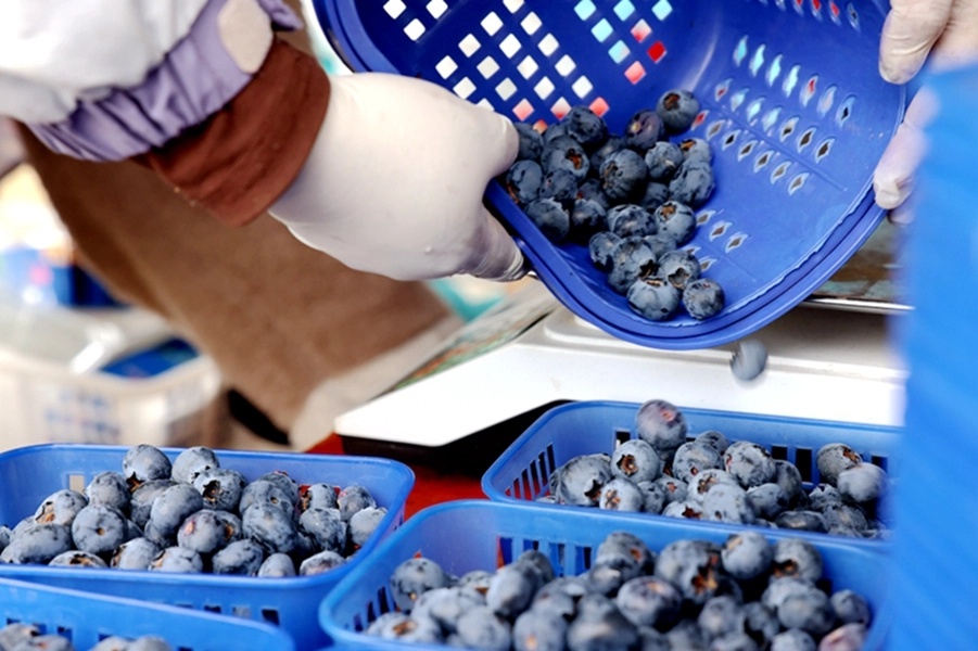 全县已培育、引进10家精深加工企业,开发果酱、果干、原浆、果汁、果酒、酵素、花青素提取物等30余种产品,产品畅销全国并远销俄罗斯、法国、越南、韩国等海外市场,构建起“七成加工、三成鲜销”的蓝莓产业发展格局。同时,以品牌塑造与传播为抓手,构建全方位品牌推广体系,“蓝莓麻江大舞台”、品牌展销全年活跃,“麻小莓”区域公共品牌影响力持续扩大。2025年,麻江蓝莓综合产值突破8.5亿元。