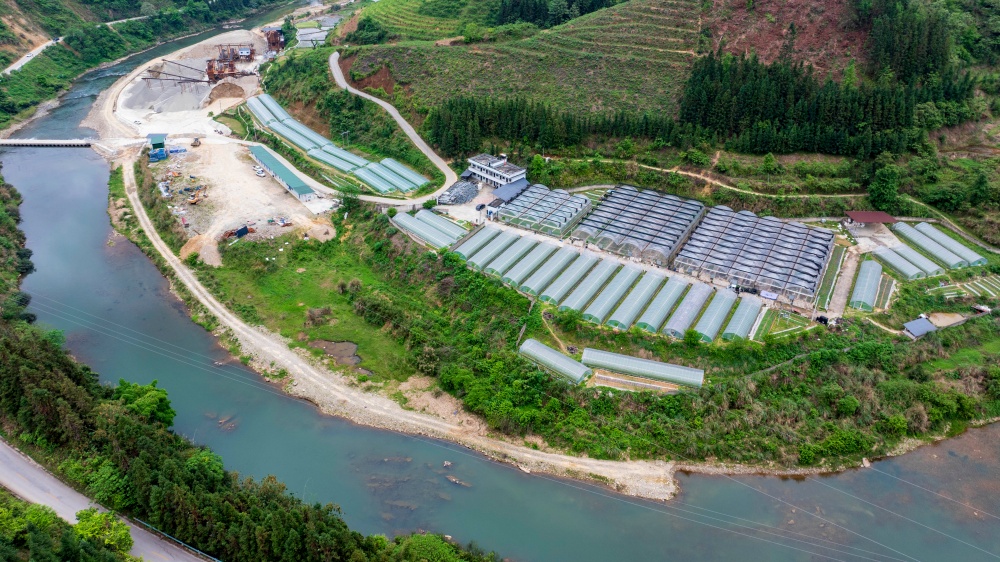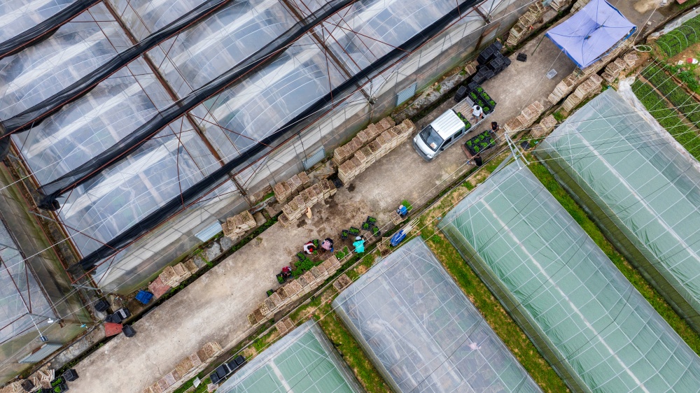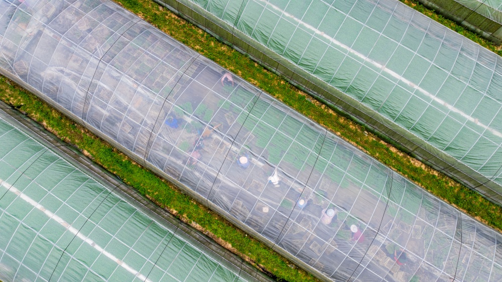 4月12日拍摄的贵州省从江县丙妹镇大塘村辣椒育苗基地(无人机照片)。