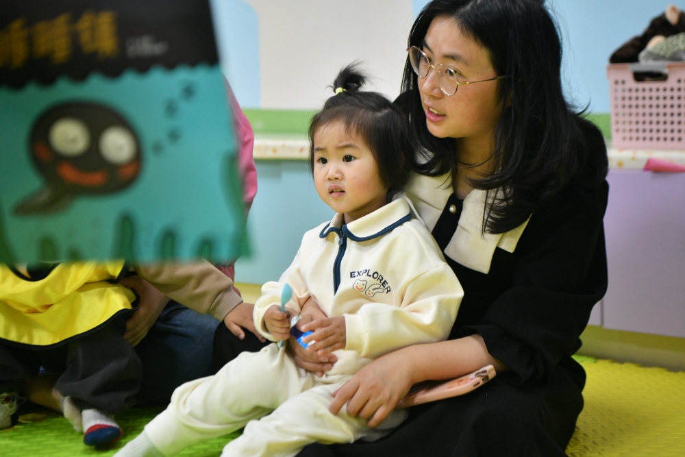 随后的音乐律动与绘本阅读环节,向继榕生动讲述绘本《睡睡镇》,带领孩子们认识小蝌蚪变青蛙、毛毛虫变蝴蝶等成长故事,还一同唱响《睡睡镇之歌》。在欢声笑语中,引导孩子们感知成长、养成良好的睡眠习惯。