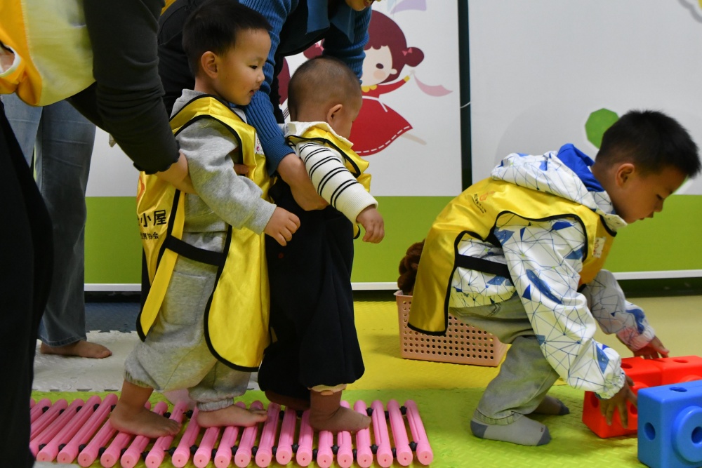 褪去白大褂、换上向日葵黄马甲,凯里市妇幼保健院护士向继榕手把手教家长为宝宝推拿助眠,还引导萌娃光脚踏过模拟浮桥。4月11月,记者在该院看到一间“向日葵亲子小屋”,成了当地0–3岁婴幼儿家庭的暖心公益“亲子学堂”。