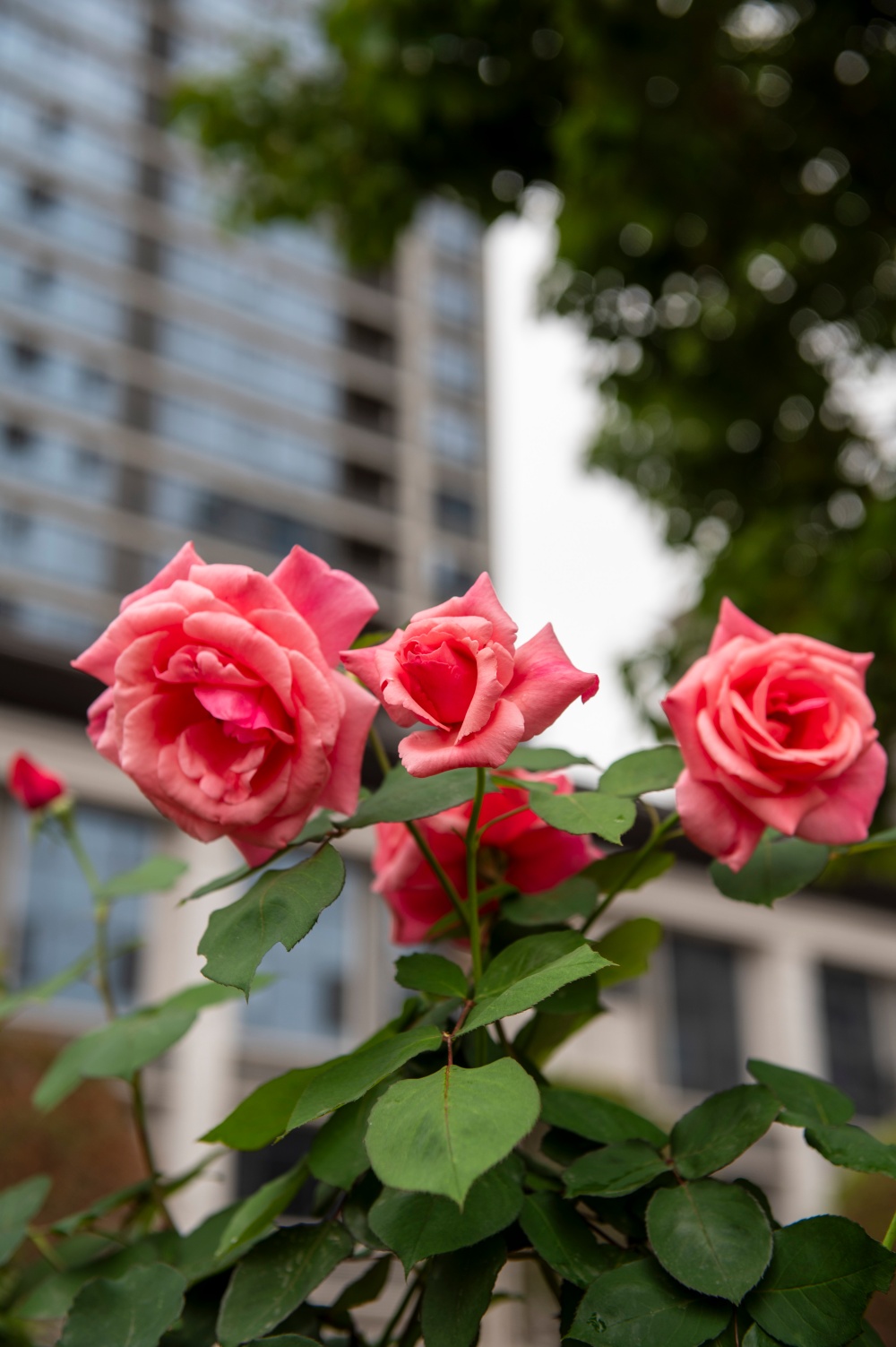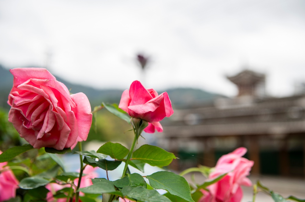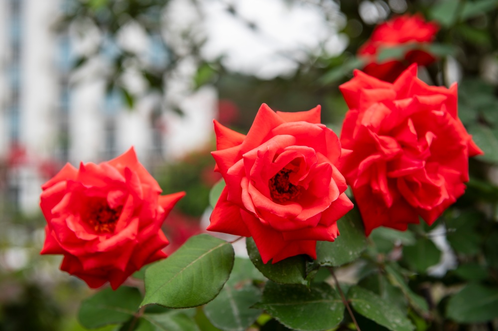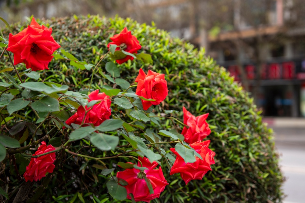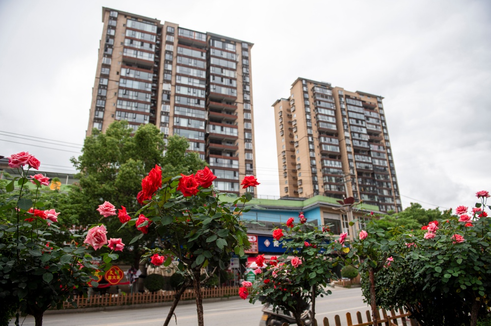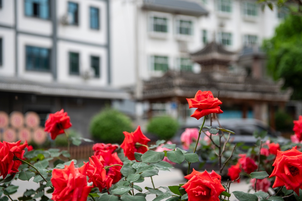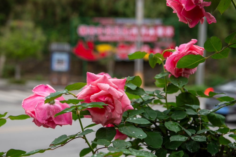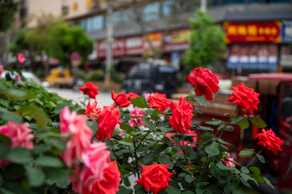 4月15日,在贵州省从江县城銮里大道拍摄的盛开的月季花。