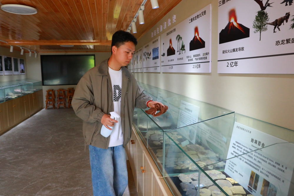 “交通便捷之后,带动了村里全方位发展,古生物化石资源和金钉子名片,让更多人认识了八郎村。”刘星宇坦言,正是因为路通了,研学团、旅游团才会慕名而来,大家都对古生物化石充满兴趣,很多家长特意带孩子前来,了解地球演化历史。随着游客越来越多,村民的日子越过越红火,未来他也会继续和父亲做好地质科普工作,让更多人知晓八郎村,用青春力量守护家乡、振兴家乡。