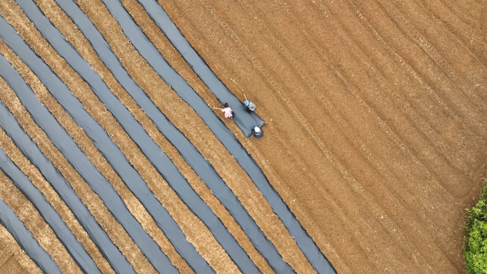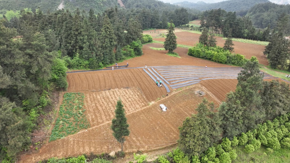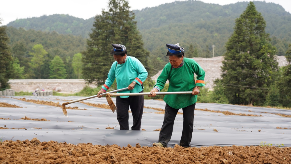 育苗稳步推进,移栽工作也陆续展开。在丹寨县金泉街道中华村,合作社正组织农户抢抓晴好农时,翻土整地、起垄覆膜、划行定点,田间地头覆膜保墒、抑草提温,春耕生产有序进行,为即将到来的辣椒移栽做好充分准备。