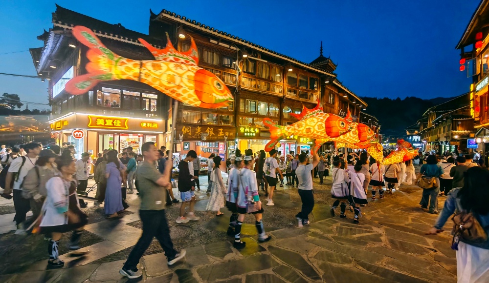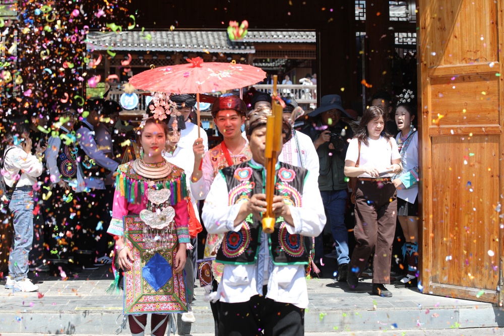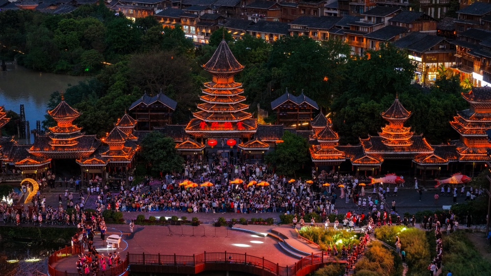 今年谷雨节活动内容丰富、韵味十足,既有侗族婚礼、侗族大歌演唱、抹花脸等传统特色民俗体验,又新增鱼灯巡游、孔明灯祈福、“龙飞凤舞”无人机表演等现代亮点,为谷雨之夜增添浪漫而震撼的节日氛围,尽显古寨新韵。