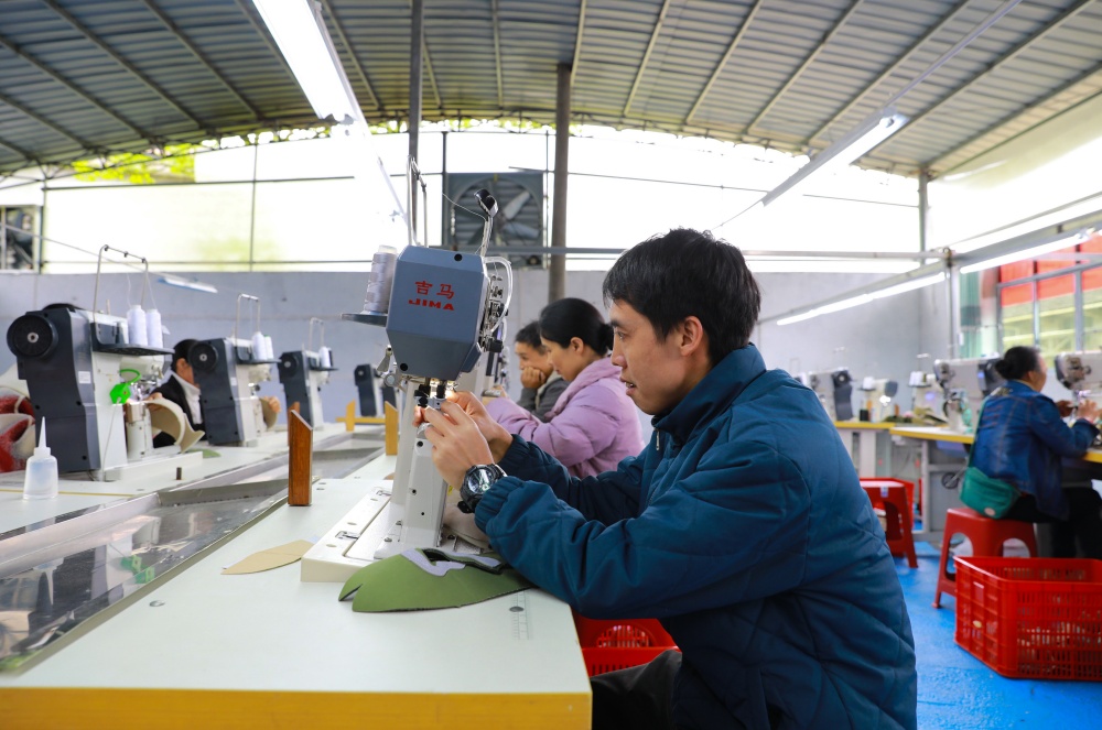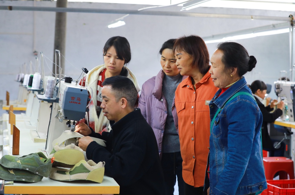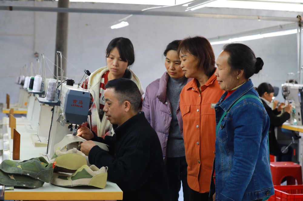 据悉,剑河县广兴鞋业科技有限公司是一家专业鞋面加工企业,长期与361°、RAX(瑞行)等知名运动鞋品牌合作,既深耕代加工生产,也拥有自主研发品牌,产品远销俄罗斯和东南亚等地。目前,小广村分厂已吸纳30名本地群众就近就业,经过系统培训后,员工熟练掌握鞋帮面制作技能,分厂日产量可达500双左右。
