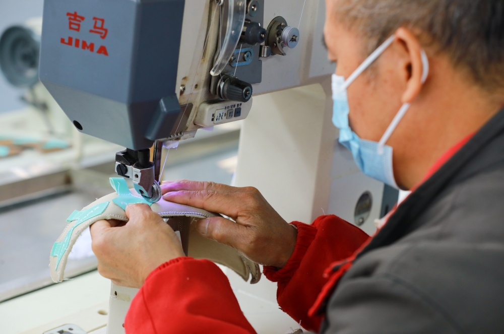“小广这边做帮面,然后拿到锦屏那边去做成品。我们有代加工的,也有自主品牌,自己研发的品牌目前也做到了三四万双的订单。”王勤补充道。