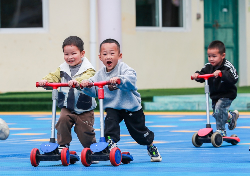 近年来,从江县积极补齐农村学前教育短板,不断完善学园户外运动体育器材、运动场所,融合“游戏+运动”模式组织幼儿参加户外运动,增强幼儿身体素质,促进健康成长。
