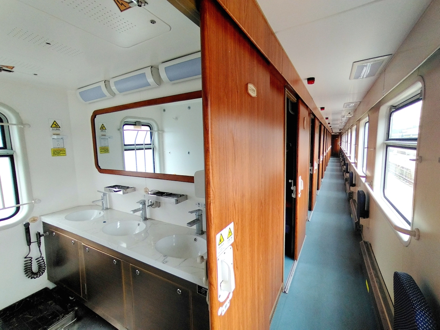 整列专列配置13节精心改造的卧铺车厢,内部空间焕然一新。为提升出行舒适度,车厢设施全面升级:卧铺区域整洁宽敞,卫生间全新加装马桶,装饰温馨雅致,彻底颠覆传统绿皮火车的出行印象。
