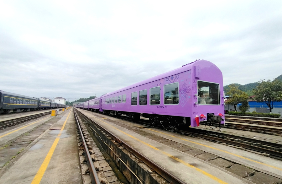 4月30日上午8时33分,一列通体紫韵、绘满贵州山水的定制旅游专列将从贵阳启程,驶向千年镇远古城——“锦绣山河·多彩贵州号”旅游列车正式首发。
