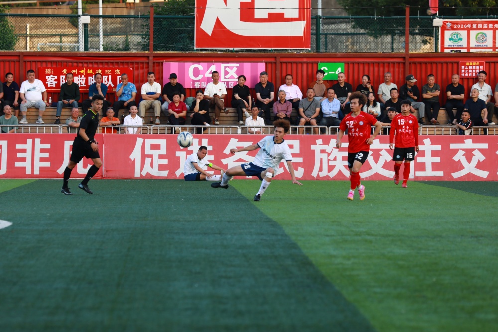 当日17时30分,季军争夺战准时开球。绿茵场上,剑河仰阿莎足球队队员精神饱满,攻防转换流畅,配合默契度极高;对手黄平低空飞行足球队同样实力不俗,凭借顽强的防守与精准的反击沉着应战。赛场内外对抗激烈,观众席上助威声、锣鼓声连绵不绝,生动展现了黔东南乡村足球的独特魅力与地域文化风情。下半场,剑河仰阿莎足球队牢牢掌握比赛主动权,凭借扎实的防守与高效的进攻,将比分优势保持至终场,以2:0锁定胜局,成功摘得季军。