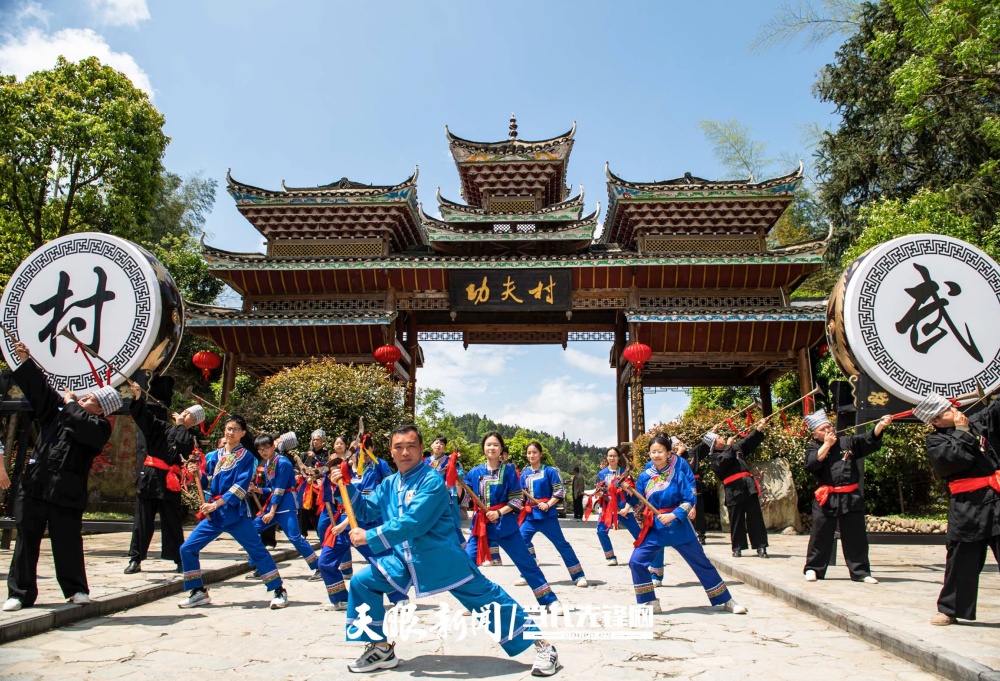 4月18日,贵州深山里的百年侗寨——天柱县渡马镇甘溪“功夫村”,擂鼓震天,“村武”开园。