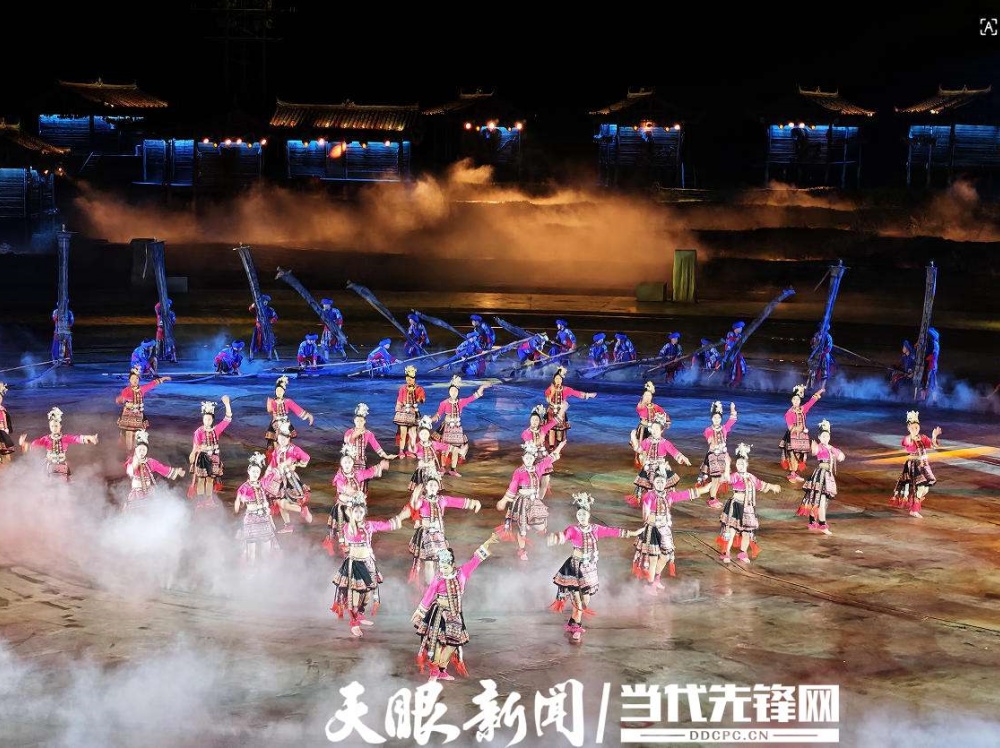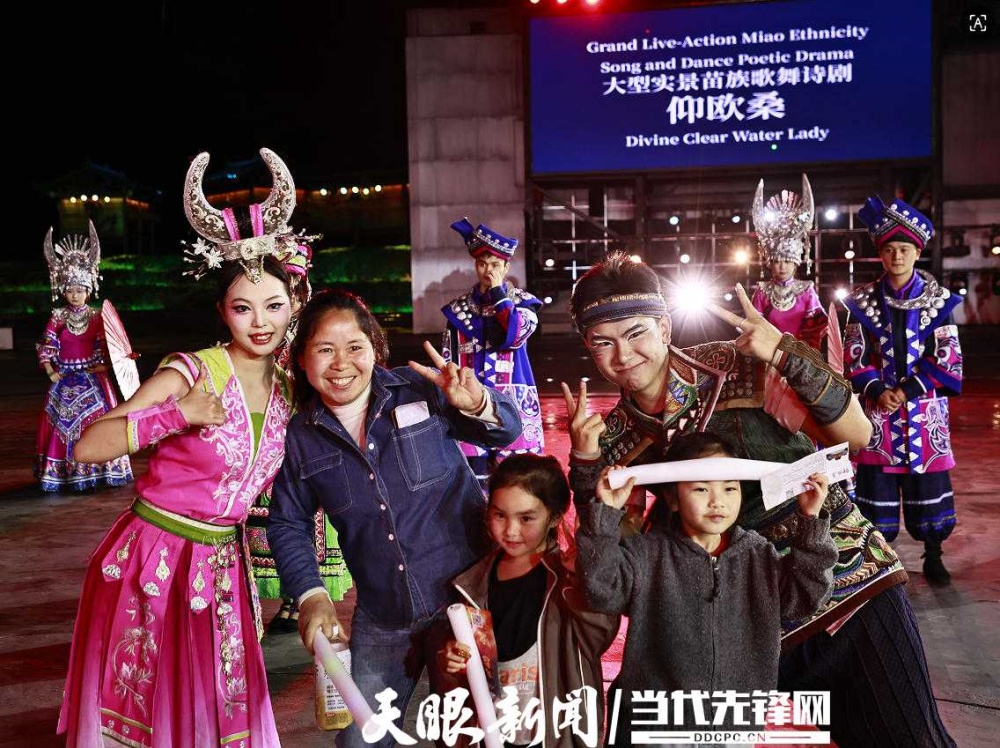 据了解,《仰欧桑》以苗族国家级非遗叙事长诗为蓝本,以清水姑娘仰欧桑与太阳的爱情传说为主线,融合苗族歌舞、服饰、习俗、器乐等文化符号,通过实景舞台、科技光影、沉浸式表演,让观众穿越千年苗疆,感受“最美丽的歌”的独特魅力。