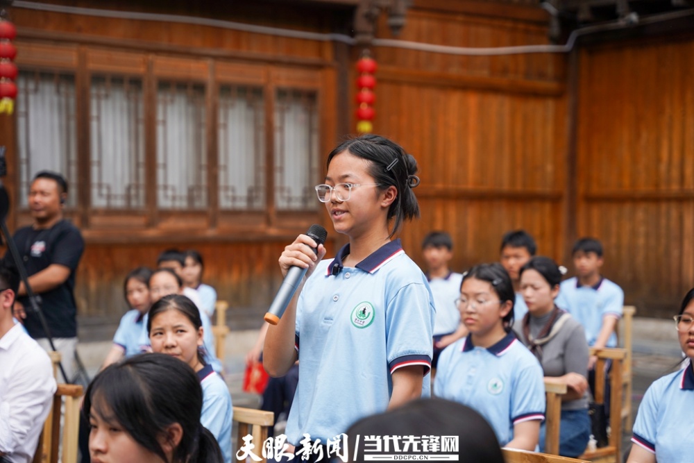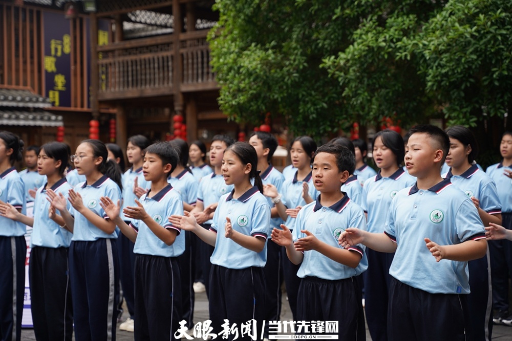 “美丽的侗寨哎,绿水青山好风光。鼓楼下,把歌唱,千年的侗歌唱给党,唱给党……”活动现场,来自黎平县肇兴中学的40余名学生为现场嘉宾演唱《侗歌声声唱给党》,富有青春活力的歌声不断回荡在古朴的侗寨山间,也为此次活动拉开了序幕。