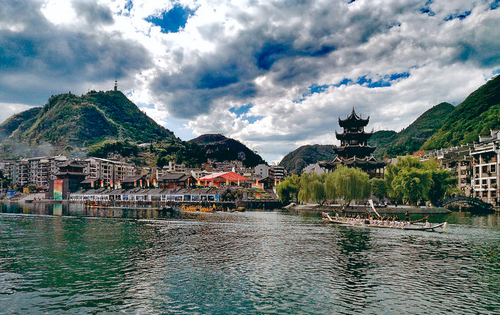 在镇远有历史记载的两千多年历史中,水上交通功能和文化交流胜景占据了历史的绝大多数时间。镇远作为古代西南的大都会,是南方水上“丝绸之路”的重要驿站,东连湘楚中原,西通云南直到缅甸、印度等国。这里繁华了多少个春秋,千百年来,这里商铺林立,酒楼茶肆鳞次栉比,南来北往的生意人,操着各种腔调的语言,云集此地,加上镇远山川雄峻,地势险要,自元代起即为军事重地,于此设军事城堡,屯兵人数多达数万。中原地区的大批商人沿长江入洞庭进沅江来到镇远,带来外地文化和生产技术,促进地方经济的空前发展,使之成为政治、军事、文化、经济同步繁荣的西南大都市,至明清时期达到鼎盛。多地域、多民族融为一体的民俗民居建筑颇具特色,南方穿斗歇山式四合院与本地少数民族吊脚楼住宅交相辉映,给镇远留下长达1000余米、宽达300余米的明清建筑群,至今完好如初。建于明代的府、卫古城垣,卫城大码头、禹门码头等12处水码头,四方井巷、冲子口巷、仁寿巷等10余条古巷道和一大片古色古香的民居四合院,分布在3.1平方公里的县城里,形成一个庞大的文物库。其中最具特色的是全国重点文物保护单位青龙洞古建筑群,其可谓集多地区、多民族建筑艺术之大成。穿城而过的氵舞阳河,把县城一分为二,南北相映。城东东峡电站建成以后,县城河段水位提高5米,形成城中有湖、湖中有城的奇观。县境内有清廷贡品天印茶,有名列扬州八大名菜的陈年道菜。镇远有国家级旅游风景区 阳三峡、铁溪,有驰名中外的民族风情,再加上众多的文物古迹,融人文景观、自然风光和民族风情为一体,是旅游胜地。