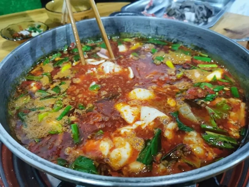 庵汤大肠作为黄平县最广为人知的一道招牌菜,同时在整个黔东南地区可以说也颇负盛名,庵汤独特的味道与臭豆腐、螺蛳粉等美食有异曲同工之妙,部分人对它的制作方式和气味的排斥,不敢轻易尝试,但也有人一尝即喜,爱不释筷,印象深刻。红油腌汤与白白的大肠的激情碰撞,以及夹杂一些牛杂,再加上一些碧绿的蔬菜和几个小炒,吃起来真是余香满口,数日不绝。今天,就让我们跟着莫非漫慢游一起,去见识一下这道独特的美食吧!