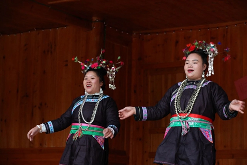 在榕江县栽麻镇归柳侗寨,村民在唱侗族大歌。