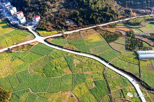 冬至时节,从江县贯洞镇龙图村绿意盎然的油菜长势喜人,与村庄、道路、大棚相映成趣,构成一幅美丽的冬日乡村田园画卷。