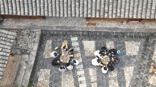 社饭特有的清香让人垂涎欲滴,前来品尝社饭的邻里好友们围坐在一起,边吃边聊,一起品尝着春天的美味。如今,吃社饭不仅是当地群众每年与春天的美味约定,更是一种生生不息的民俗文化传承。