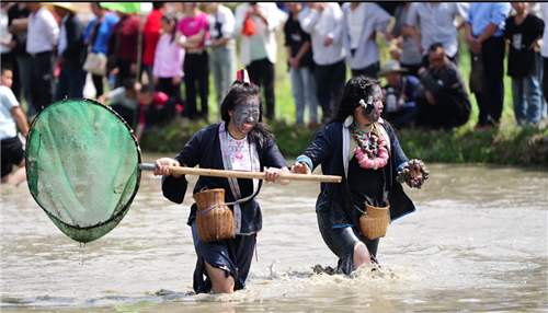 特别是捞社过程中,扮相怪异的人在捞社田间四处走动搞怪,时而奔跑怪叫,时而将泥巴或鱼扔向捞社的人群和岸上观看的观众,把现场变成了欢乐的海洋,让各地游客沉醉其中。