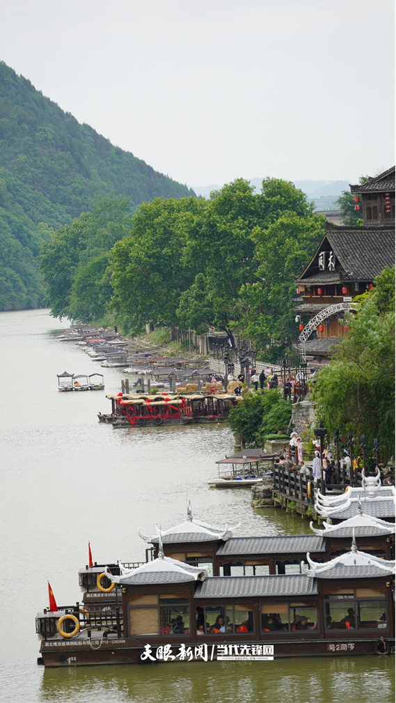 古巷之间,石板街上,在曲径通幽、熙熙攘攘间,游客或流连集市、或体验非遗、或品味美食;清水江畔,连心桥边,在暗香浮动、树影婆娑间,游客或泛舟慢行、或阁下休憩、或拍照打卡,尽情地品味古镇的宜人生活。