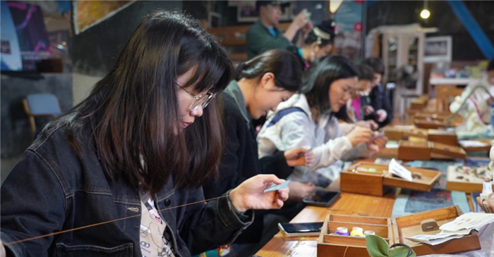 手工刺绣是苗族、侗族等民族的传统技艺,走进位于高增乡的侗房非遗体验馆,游客们在绣娘的指导下,根据自己所画图案一针一线完成,亲手体验刺绣的乐趣,大家纷纷拍照留念,有说有笑,气氛十分热烈。