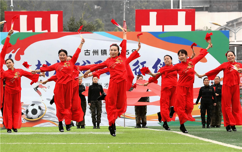 当日,贵州省黔东南苗族侗族自治州榕江县古州镇在城北新区“村超”足球场举行2025年贵州村超足球队出征仪式。来自古州镇的22支足球拉拉队现场进行民族歌舞、走秀等才艺大比拼,展现当地特色民族文化,“村”味十足。