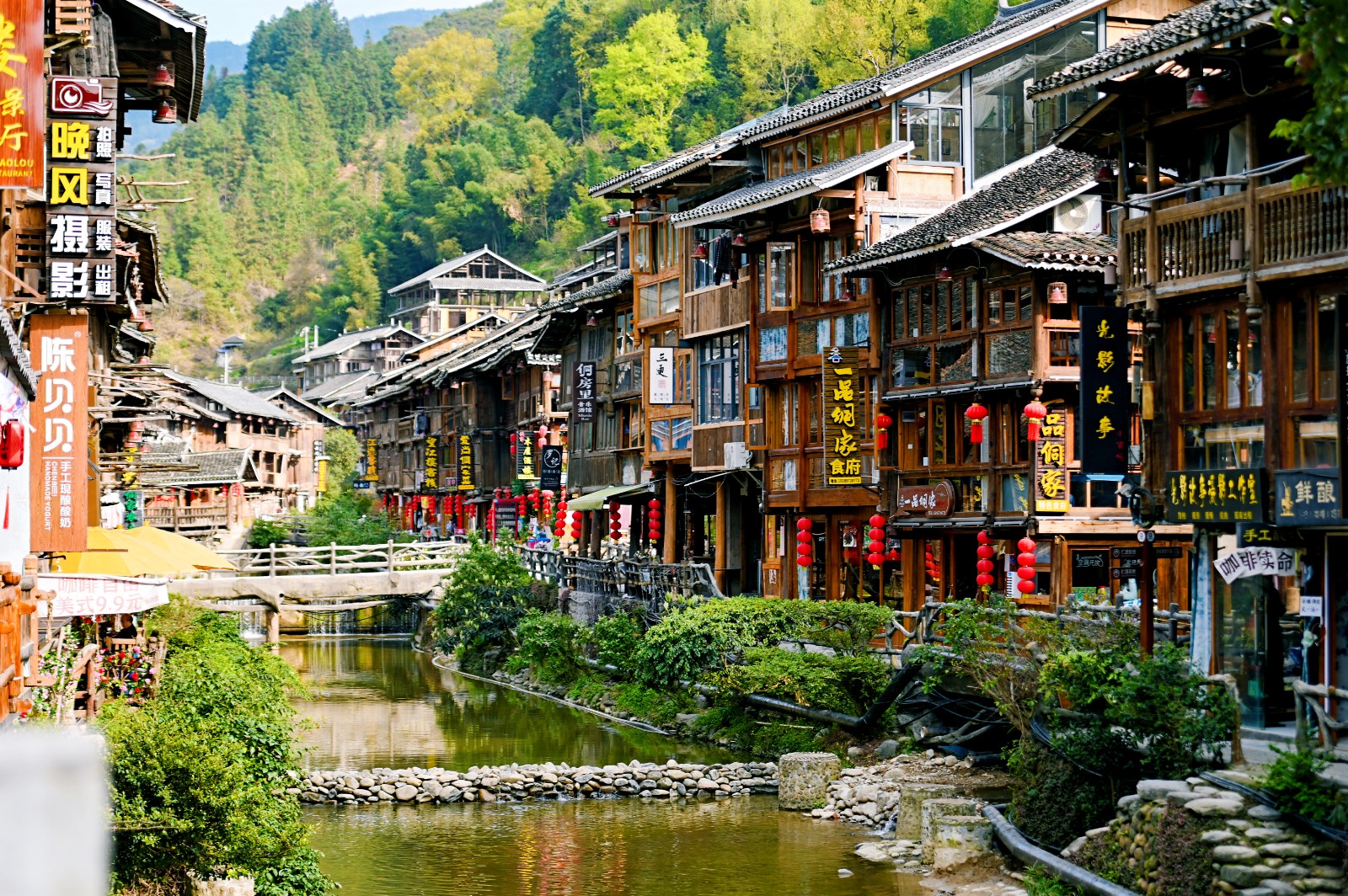 位于黔东南雷山县的西江千户苗寨,迄今已有2000多年悠久历史。西江千户苗寨承载着中国历史上苗族五次大迁徙聚居地的珍贵历史记忆。苗族的农耕文化、民俗风情、银饰制作、服饰艺术、饮食特色、歌舞艺术及其遗风古俗,在这里代代相传、绵延不绝。这座苗族文化的瑰宝,完整地保存了苗族的原生态与文化特色。寨中,错落有致的吊脚楼依山傍水,层层叠叠,连绵起伏,形成一幅壮观的画卷。这独特的建筑风貌吸引了无数游客慕名而来。