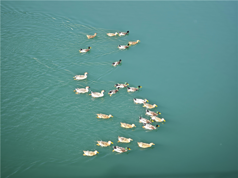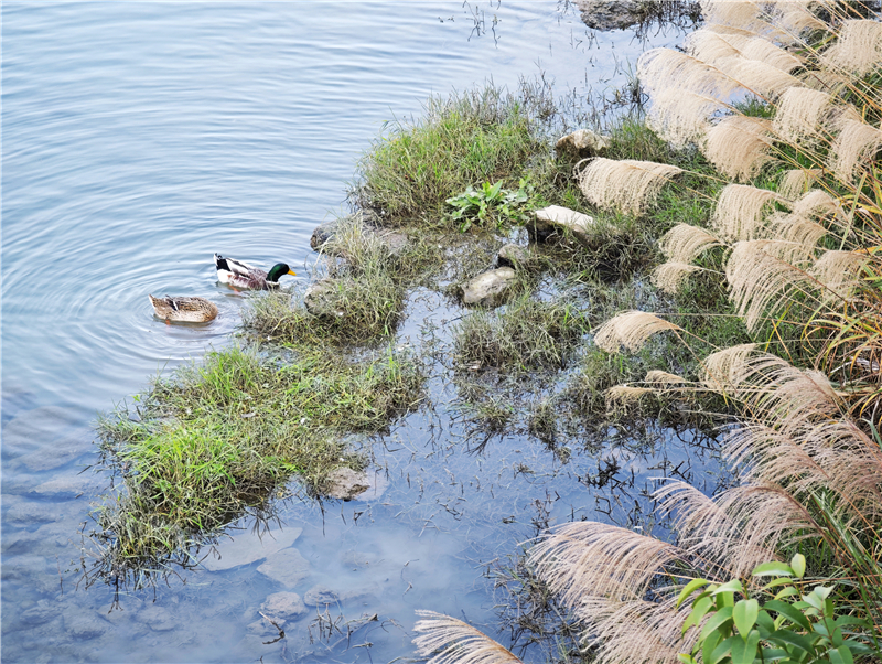 当地人说,要读懂重安镇,必先看重安江三桥。沿着江岸边前行,成群的鸭子贴着江面游弋,最终化作几个灵动的小点,与芦苇、远天融为一体。