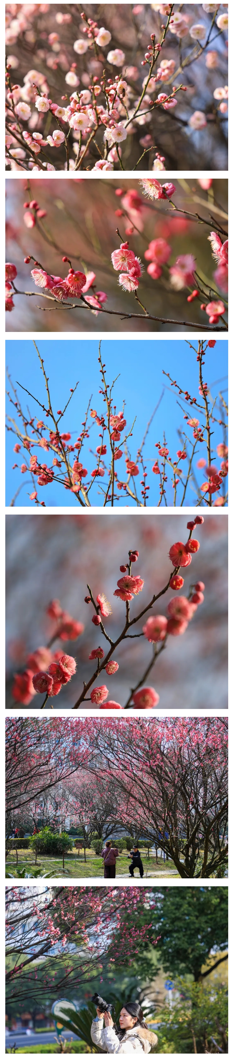 近日,凯里市行政中心广场、苹果山公园、东湖湿地公园、西出口公园等地,红梅竞相绽放。艳红的花瓣缀满枝头,在料峭冬风中傲然舒展,层层叠叠的花蕊吐露芬芳,成为冬日里一抹明艳动人的风景。让漫步园内的市民纷纷驻足,或打卡拍照,或俯身嗅香,尽享这份独属于冬日的雅致与生机。