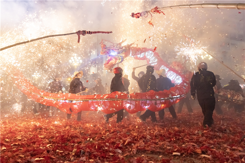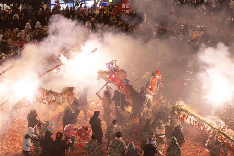 最令人期待的当属2月27日正月十一的“焰火勇士—炸龙狂欢”。当晚,施秉县城关镇10个社区的亮龙队伍将齐聚十字街,舞龙者身着盛装,甚至赤身裸背,在漫天烟花爆竹中翻滚腾跃,任凭火花沾身、炮火炸顶,依旧身姿矫健,将施秉人勇敢豪爽的特质展现得淋漓尽致。与此同时,“龙行施秉·福入万家”接龙接福活动同步开展,企业、商户、小区争相迎接龙灯,祈求新岁吉祥。
