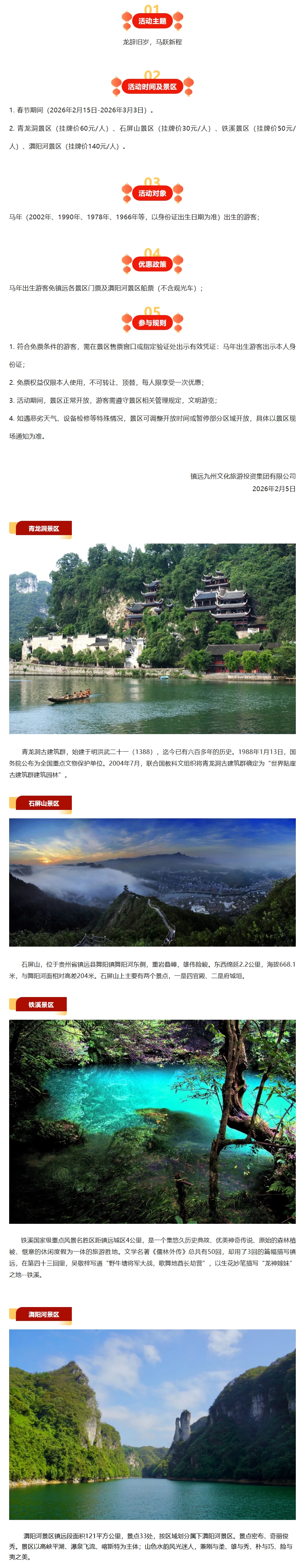 镇远古城景区春节优惠政策