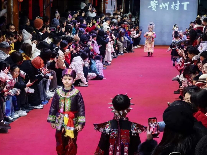与此同时,凯里市苗侗风情园推出的“村T”非遗民族服饰T台秀,于2月19日至23日精彩上演,这项被CCTV赞誉“村里也有‘国际范’”的文旅IP,让游客在时装秀中感受苗侗非遗的时尚表达。