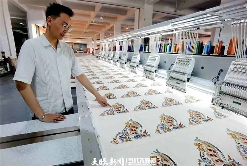 春潮涌动黔东南,实干奋进启新程。在黔东南州施秉县,春节的喜庆尚未散尽,舞水云台旅游商品开发有限公司的生产车间里,特种绣花机高速运转,绣针携线穿梭,将千年苗绣纹样与现代工业技术完美交融。