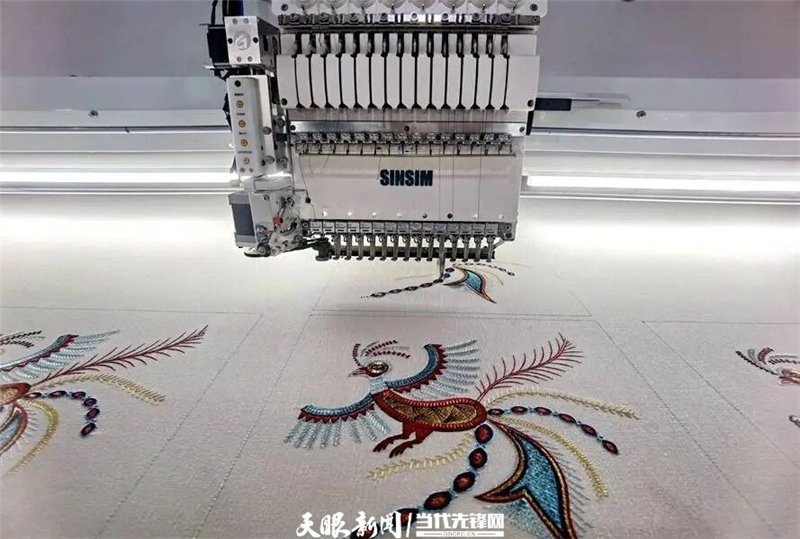 工业高质量发展的核心在于提质增效,而传统产业破局的关键,在于打破“手工依赖”的瓶颈,实现传统技艺与现代工业的有机衔接。走进舞水云台的生产车间,两台价值110万元的特种绣花机格外引人注目,这是企业2025年引进的省内少有的特种设备,可同时完成平绣、珠绣、亮片绣等多种工艺。