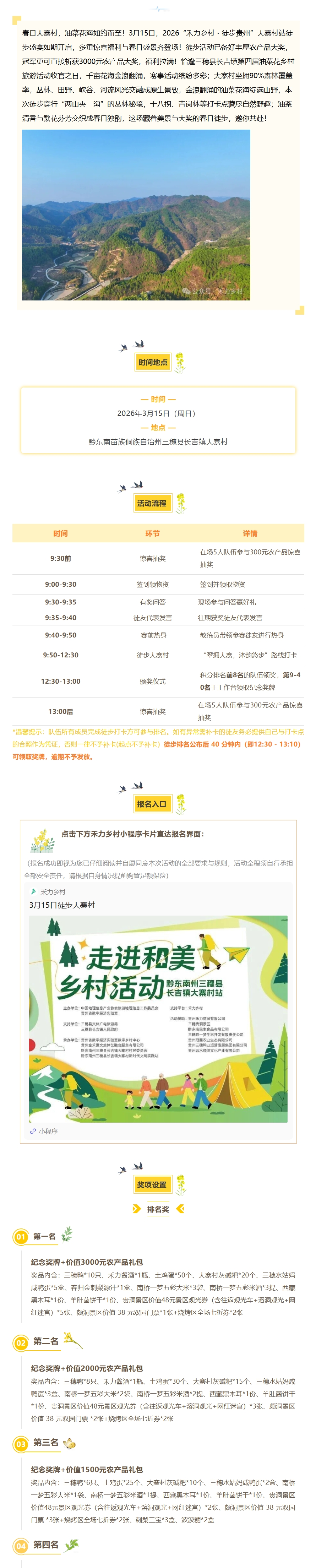 花海赴春约!3月15日大寨村徒步,多重惊喜福利与春日盛景齐登场!