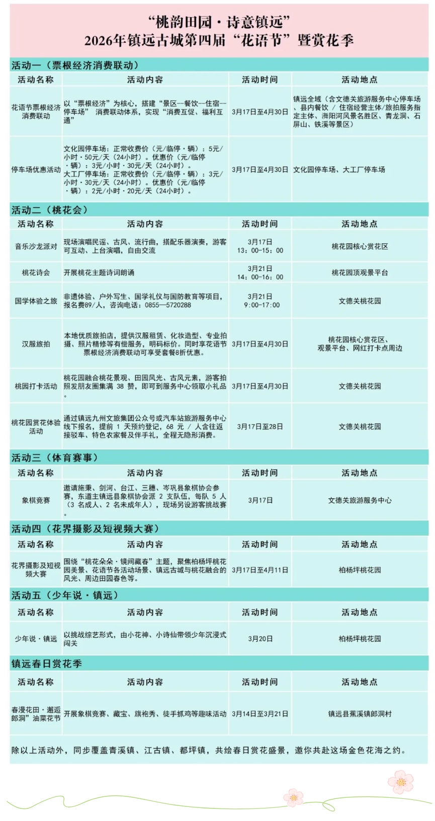 2026年“桃韵田园・诗意镇远”镇远古城第四届“花语节”暨赏花季启幕啦!五大活动燃情来袭!这个春日,镇远古城欢迎您来赏花踏春,亲身感受镇远春日的美好与惬意。
